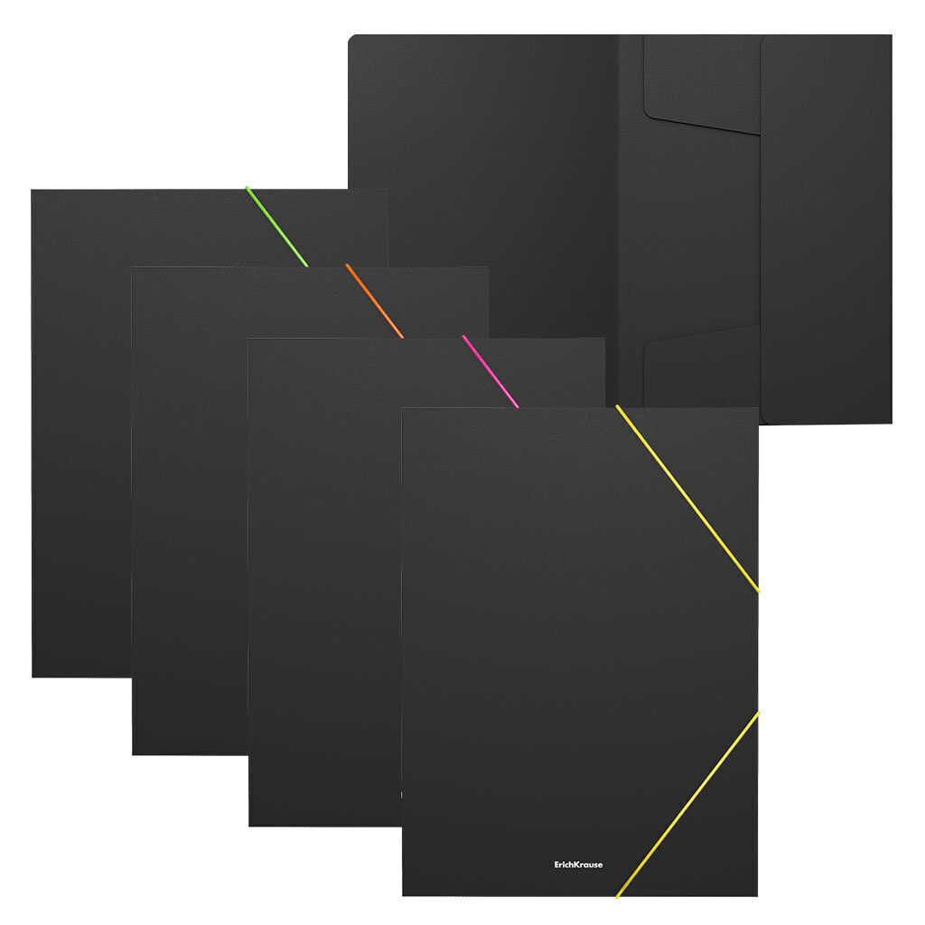 Папка на резинке А4 0,5мм Matt Accent, черная с цветной резинкой