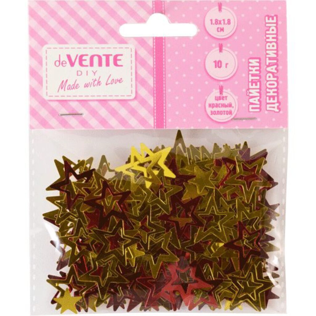 Пайетки декоративные фигурные "deVENTE. Звезды" 10 г, размер 18x18 мм, цвета золотой и красный, в пластиковом пакете с блистерным подвесом