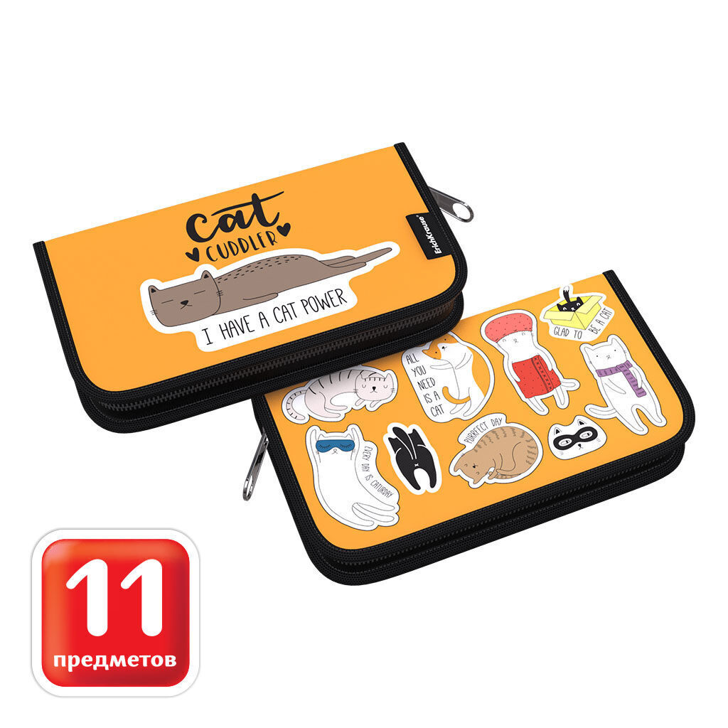 Пенал 1 отд. (205*110*25) молния, ткань, наполнение 11пр. "Funny Kittens"
