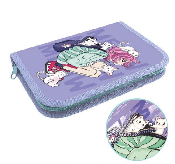 Пенал 1 отд. с 1-ой откид.пл. (190*130*27) молния, лам.картон "Котята с девочкой"