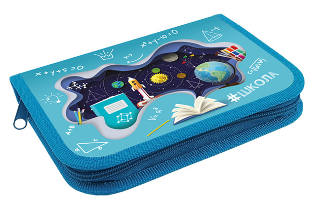 Пенал 1 отд. с 1-ой откид.пл. (190*130*27) молния, ткань "Школьный мир"