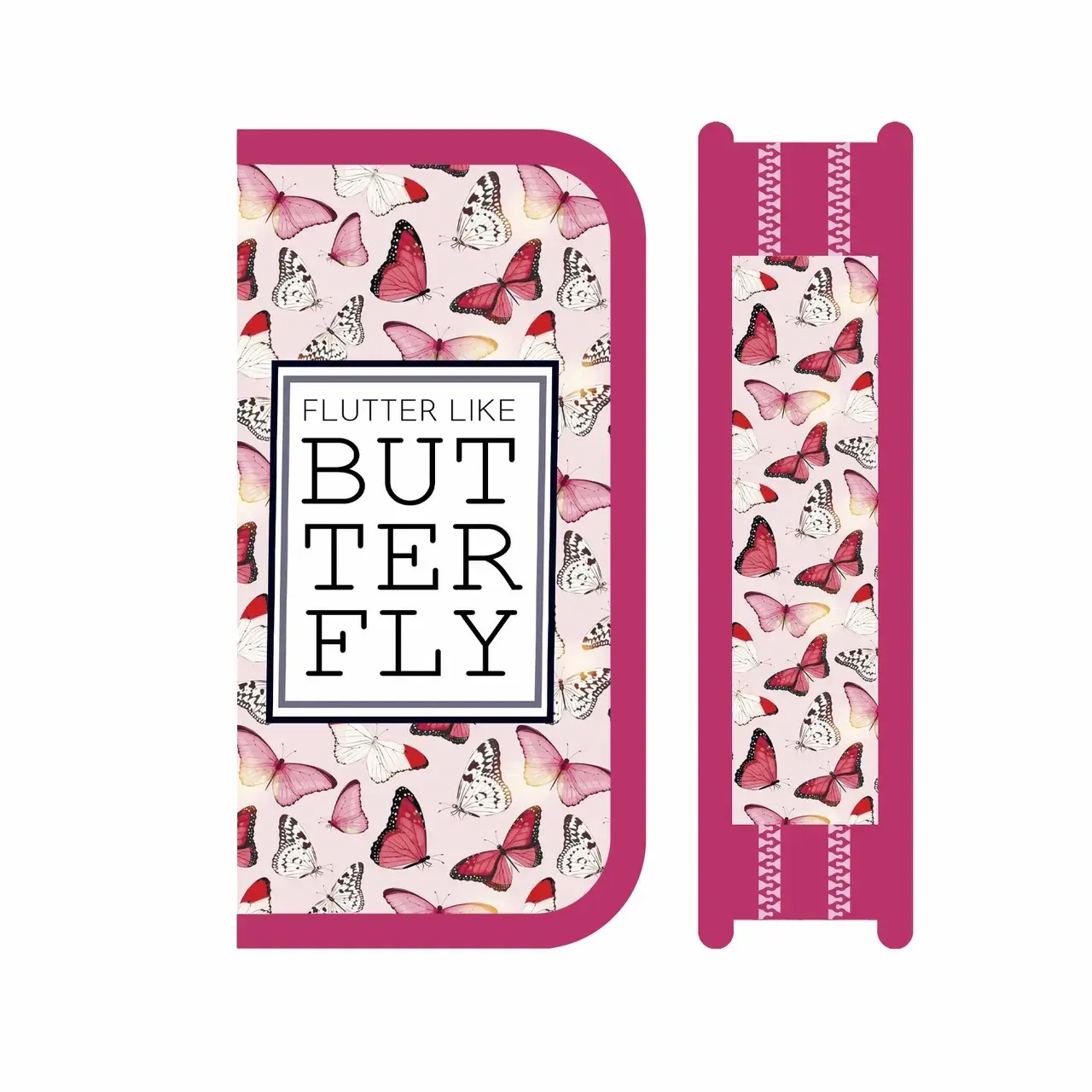Пенал 2 отд. (190*115*30) молния, картон soft-touch, ткан.торец "Violet butterfly"