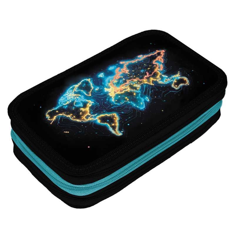 Пенал 2 отд. (205*125*40) молния, лам.картон "Карта мира" с эффектом МЕТАЛЛ