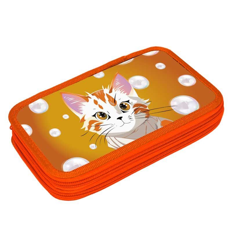 Пенал 2 отд. (205*125*40) молния, лам.картон "Кошка и пузыри"