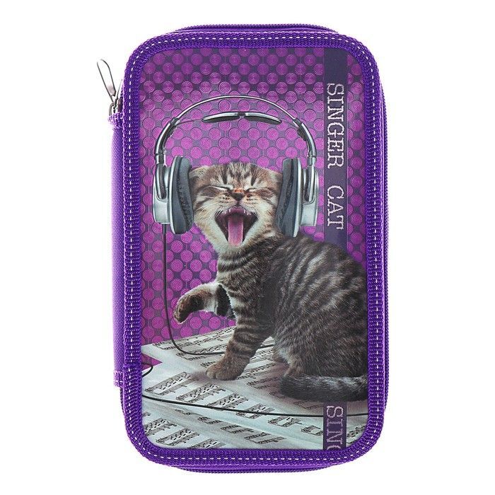Пенал 2 отд. (205*125*40) молния, лам.картон "Кот-певец"