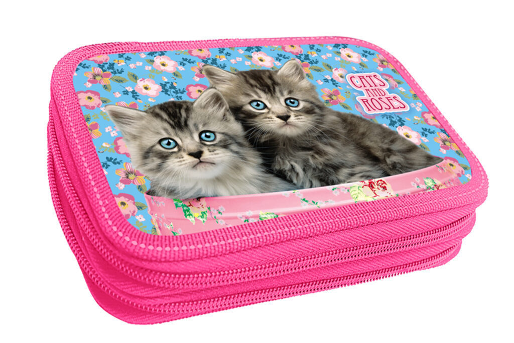 Пенал 2 отд. (205*125*40) молния, лам.картон "Коты и розы" с блестками+ конгрев