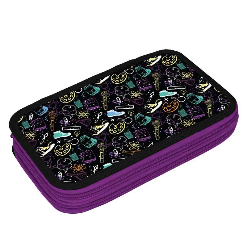 Пенал 2 отд. (205*125*40) молния, лам.картон "Школьный паттерн" с эффектом МЕТАЛЛ