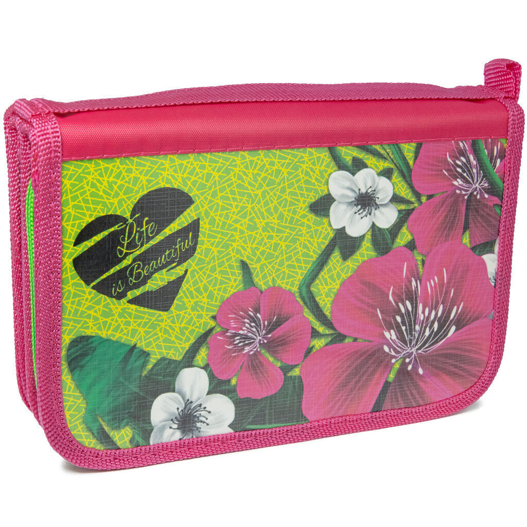 Пенал 2 отд. с 1-ой откид.пл. (190*120*50) молния, лам.картон "Цветы"