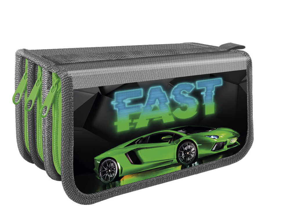 Пенал 3 отд. (190*105*60) молния, металлиз.лам.картон "Быстрое авто"