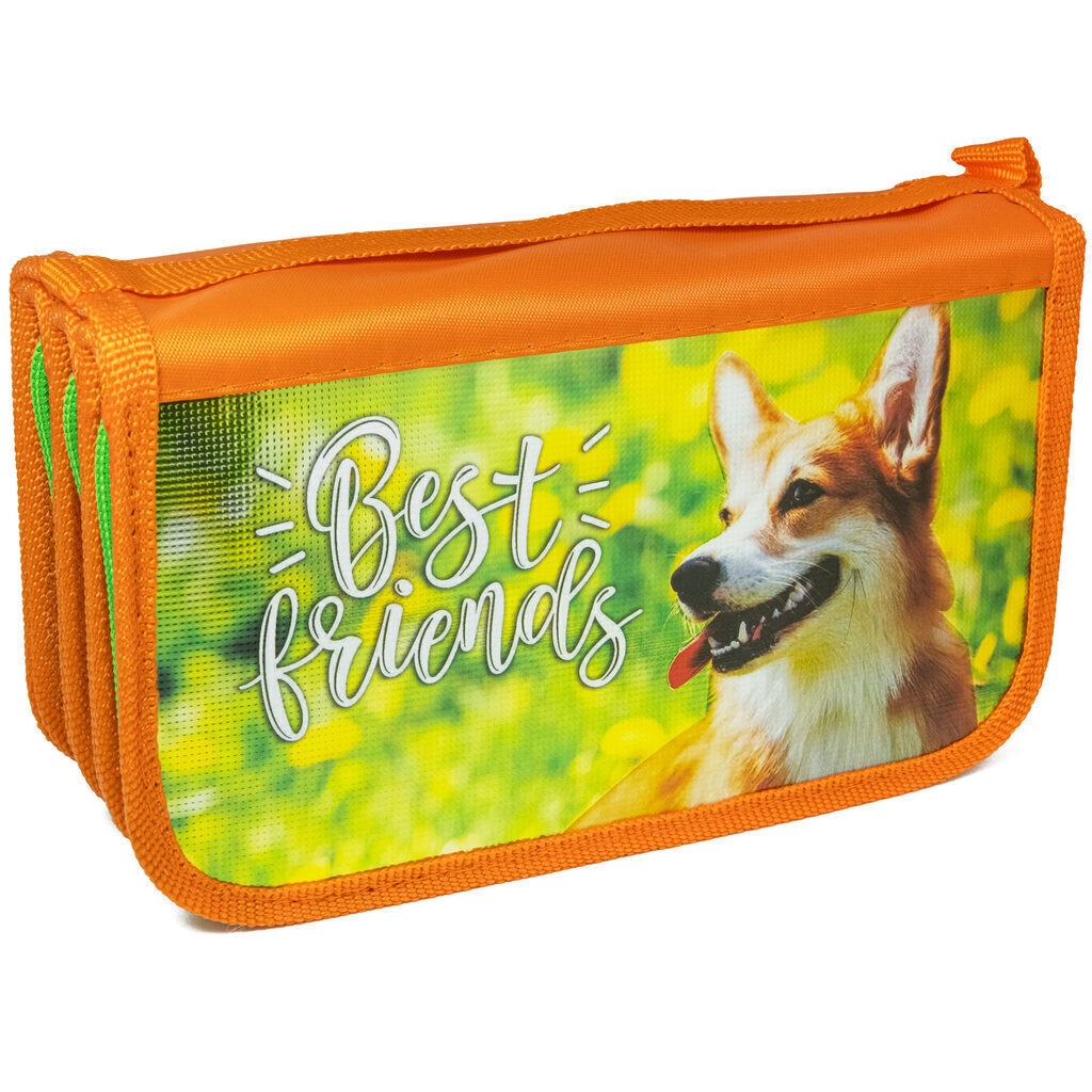 Пенал 3 отд. (190*105*60) молния, металлиз.лам.картон "Корги на солнышке"