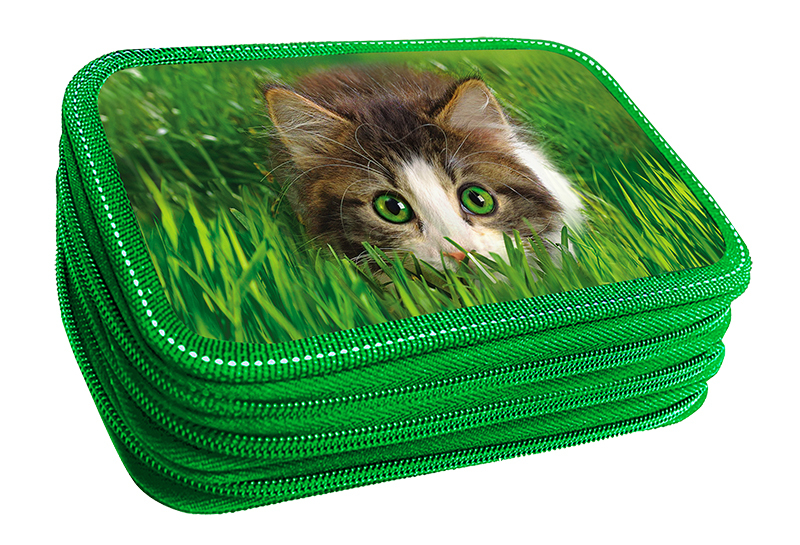 Пенал 3 отд. (205*125*55) молния, лам.картон "Котенок в траве" с эффектом МЕТАЛЛ