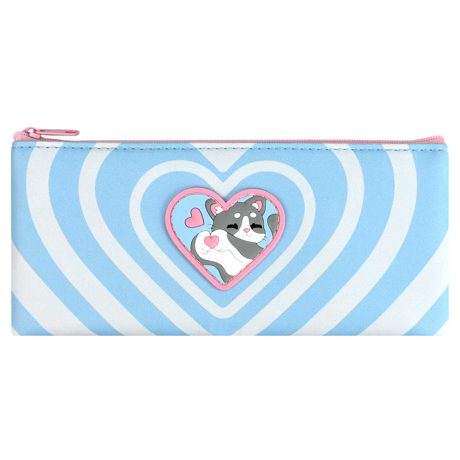 Пенал-косметичка (195*90) молния, кожзам "Влюбленный котик" резиновая нашивка