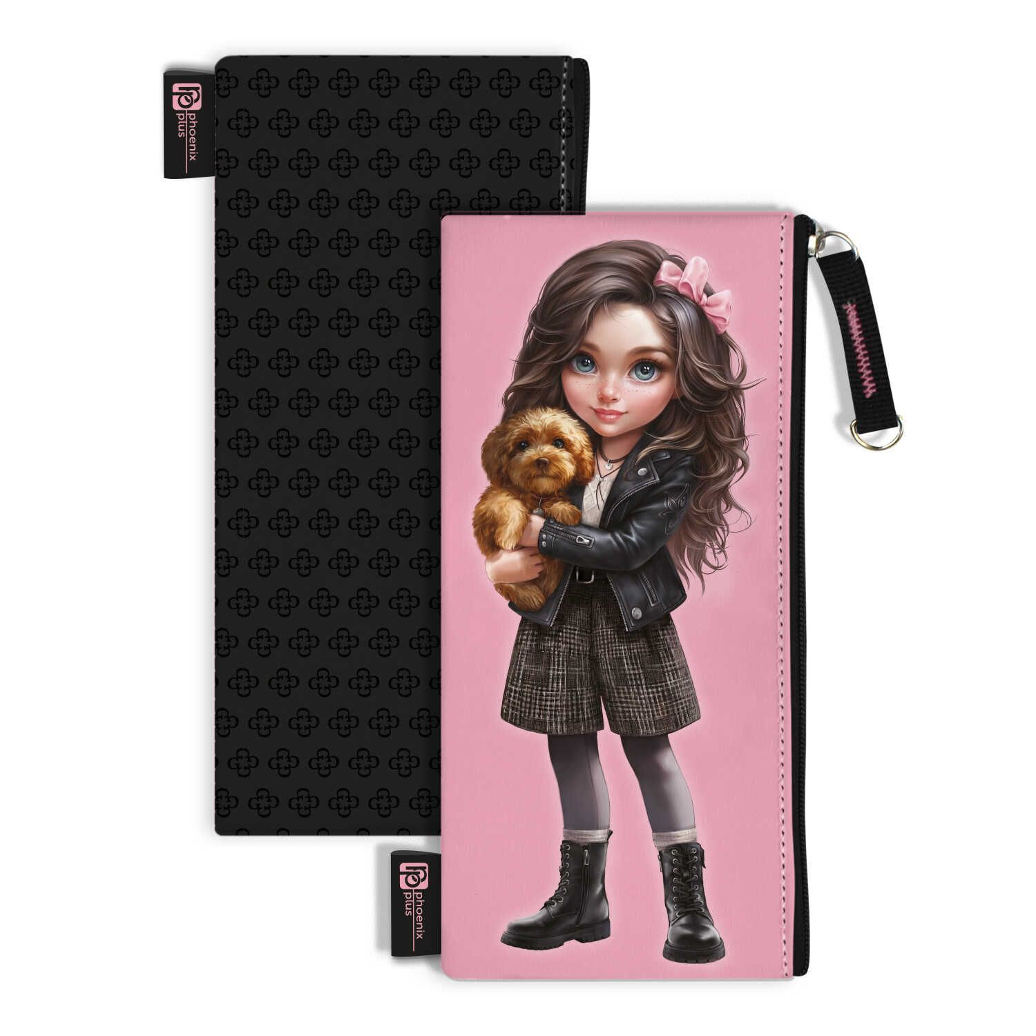 Пенал-косметичка (195*90) молния, микрофибра "Брюнетка с собачкой"