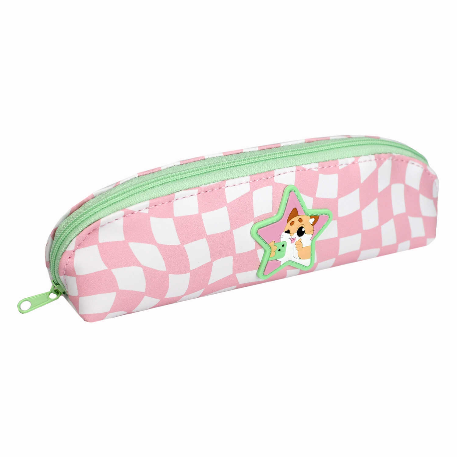 Пенал-косметичка (200*65*55) молния, кожзам "Котик с телефоном" резиновая нашивка