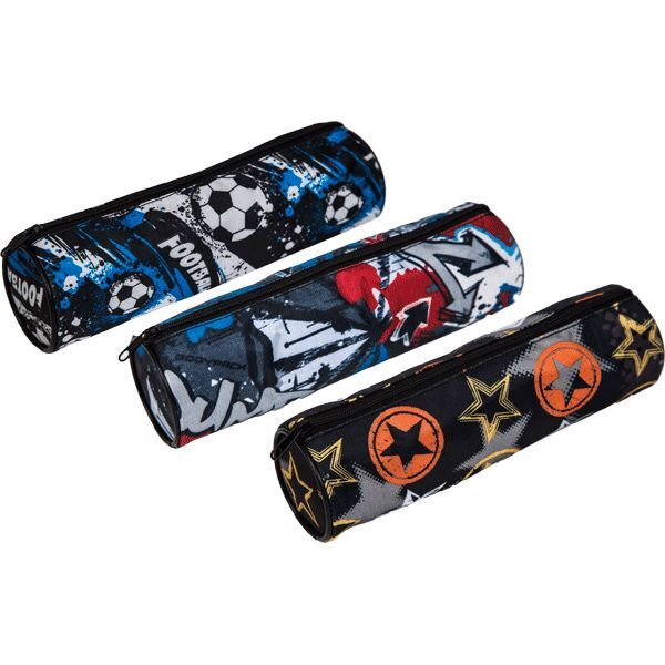 Пенал "Attomex. Football" 20x6x6 см, круглый для 55 предметов, на молнии, текстильный с рисунком, ассорти 3 дизайна