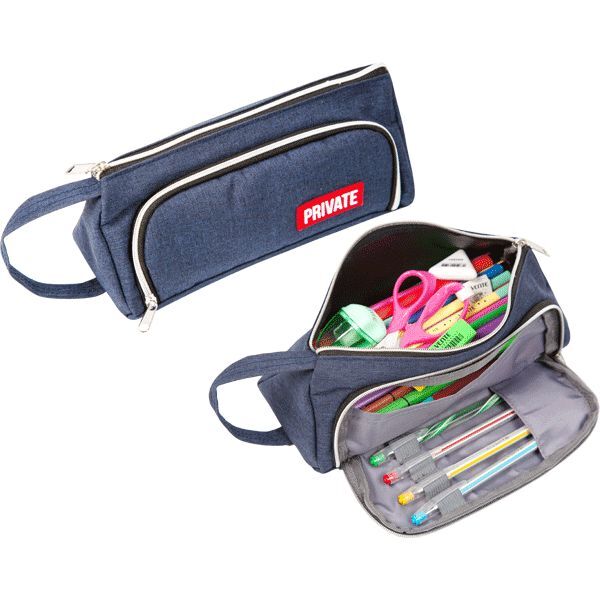 Пенал "deVENTE. Private" 21x8,5x8,5 см, треугольный для 70 предметов, текстильный, на молнии, с ручкой, наружный объемный карман на молнии с плавающей перегородкой, с каучуковой аппликацией, темно-синий
