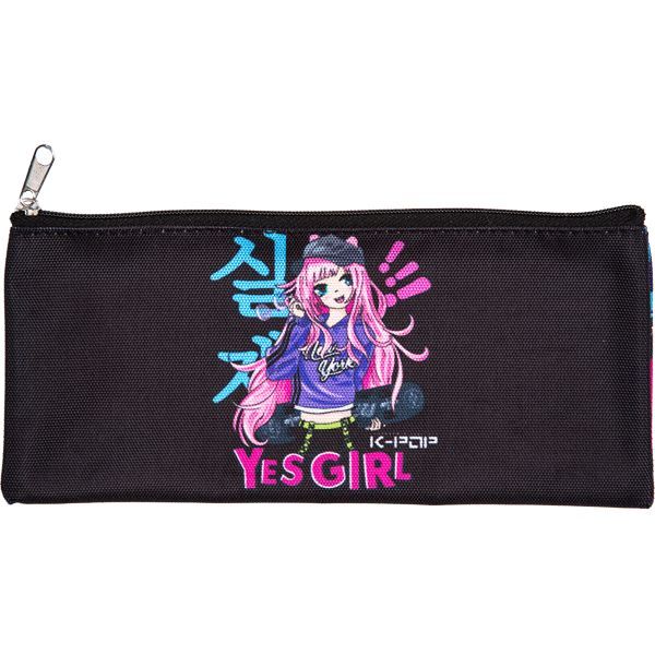 Пенал "Attomex. Yes Girl" 21,5x9x1 см, плоский для 35 предметов, текстильный, на молнии