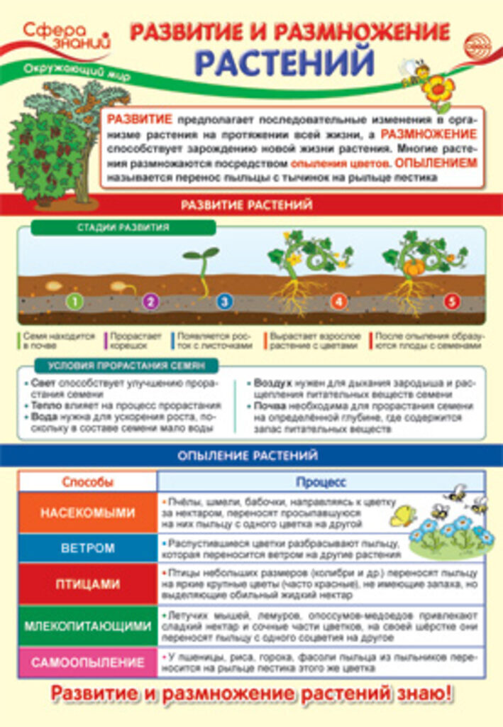 Плакат даст представление о развитии и размножении разных видов растений, познакомит
