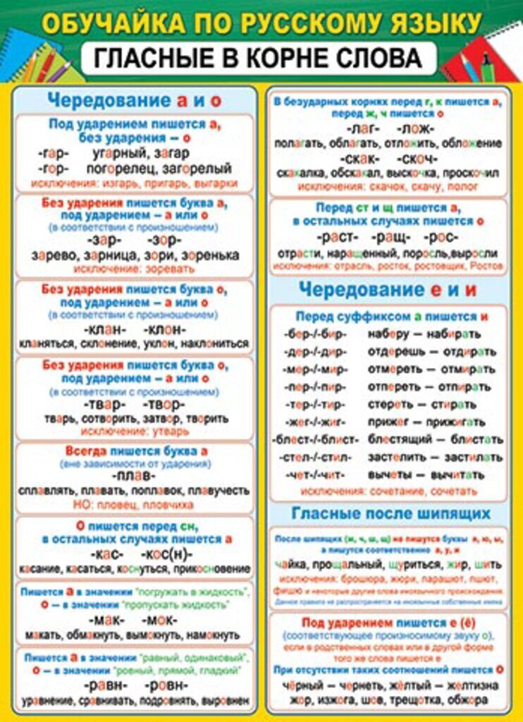 Обучающий плакат по русскому языку объяснит школьникам правописание гласных в корне слова. Плакат идеально подойдет для выполнения домашних заданий по русскому языку и станет незаменимым наглядным пособием во время уроков. Яркий дизайн привлечёт внимание школьника и станет незаменимым помощником при выполнении домашней работы, а также поможет разобраться с правилами русского языка и адаптироваться к школьной программе с первых занятий!