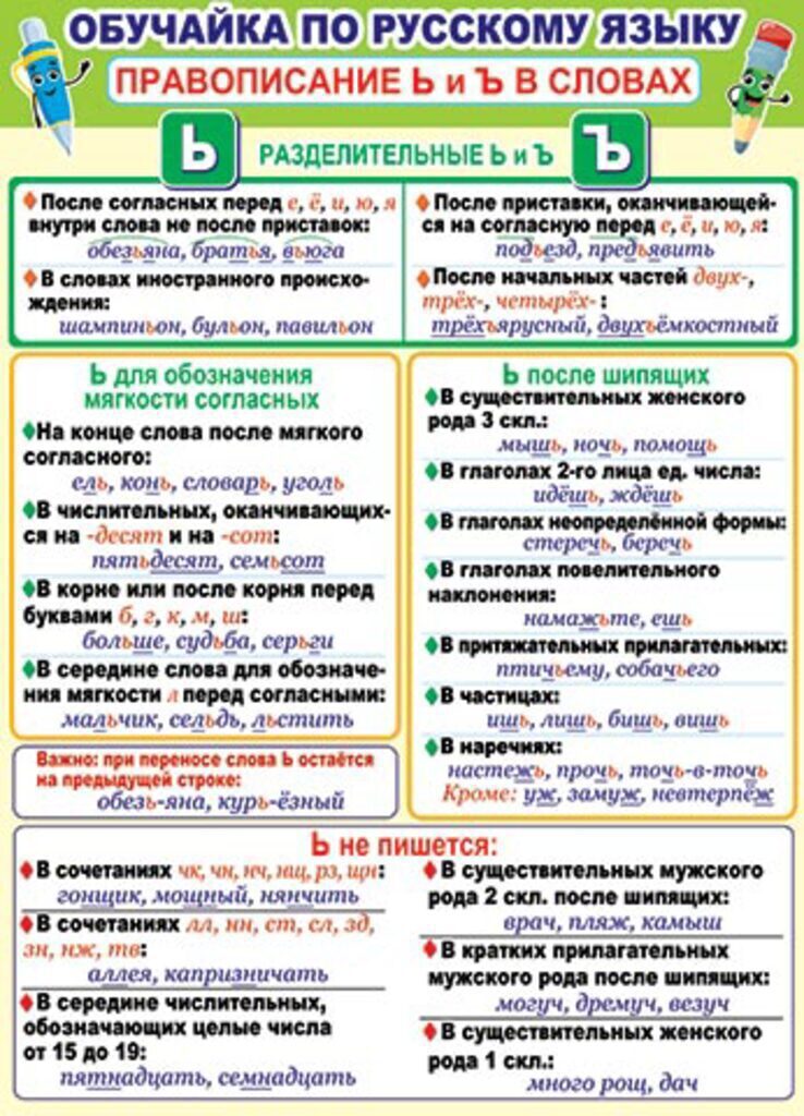 Плакат 50*70см "Обучайка по русскому языку. Правописание Ь и Ъ в словах"