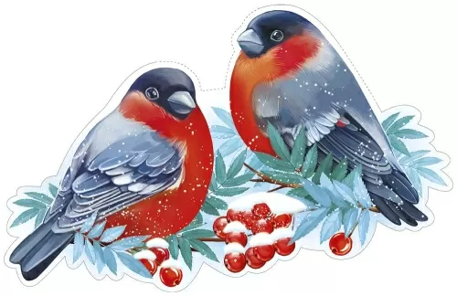 Плакат фигурный 35*24см "Снегири на ветках рябины"