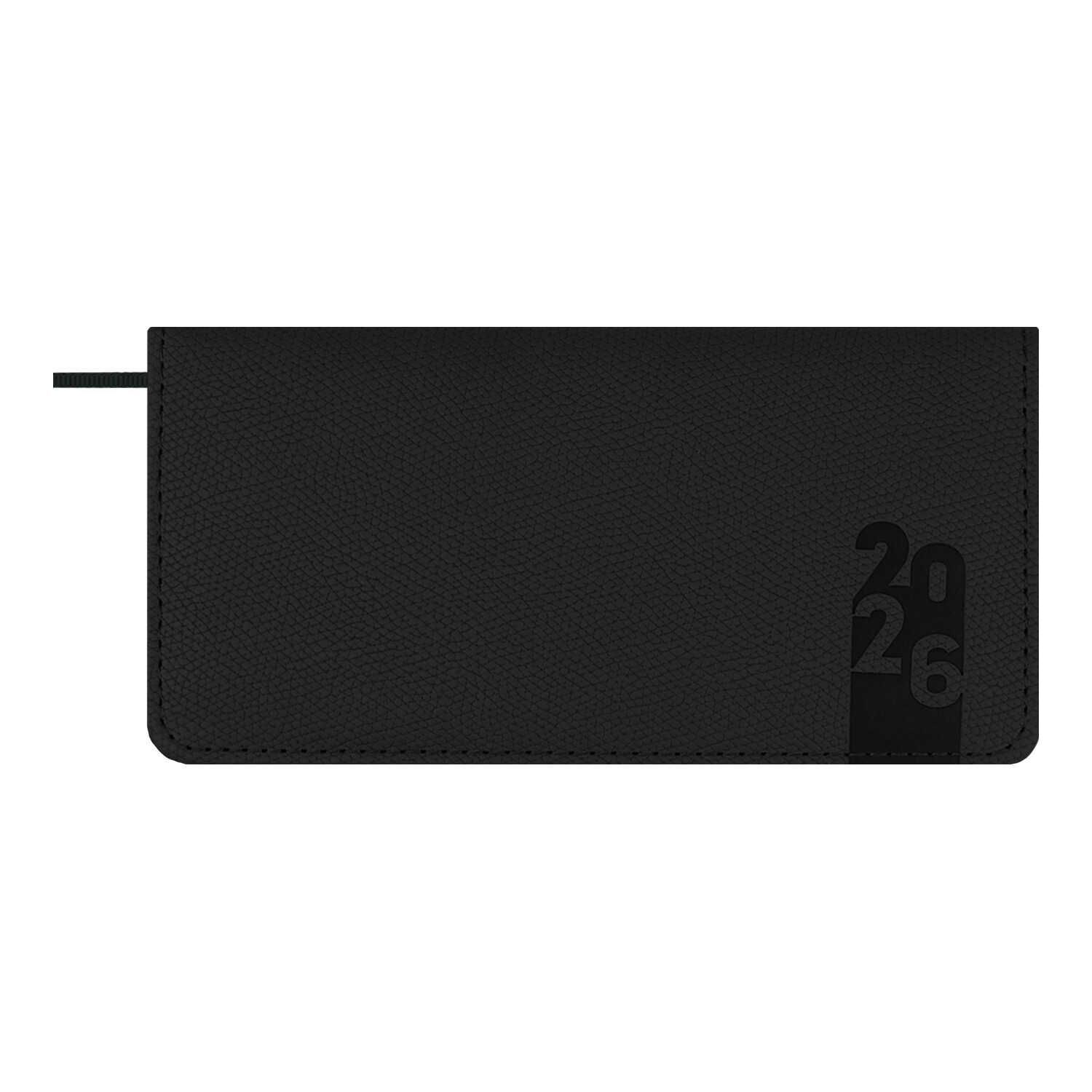 Планинг дат. 2026г 170*88мм 64л., кожзам., тв.пер. "Джут черный" блинт.тисн., ляссе
