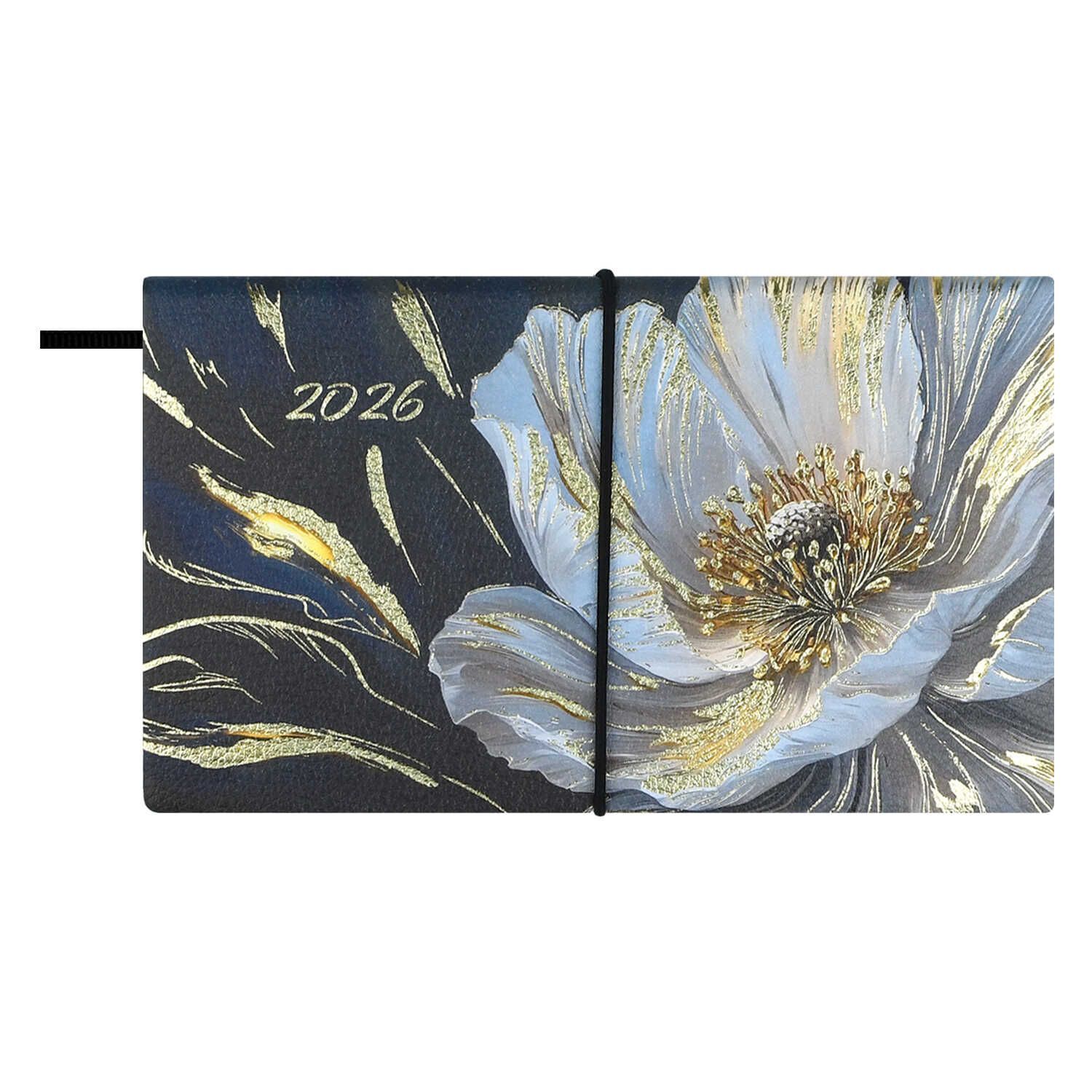 Планинг дат. 2026г 175*105мм 64л., кожзам., мягк.пер. "Белый мак" тисн.фольгой, резинка,ляссе