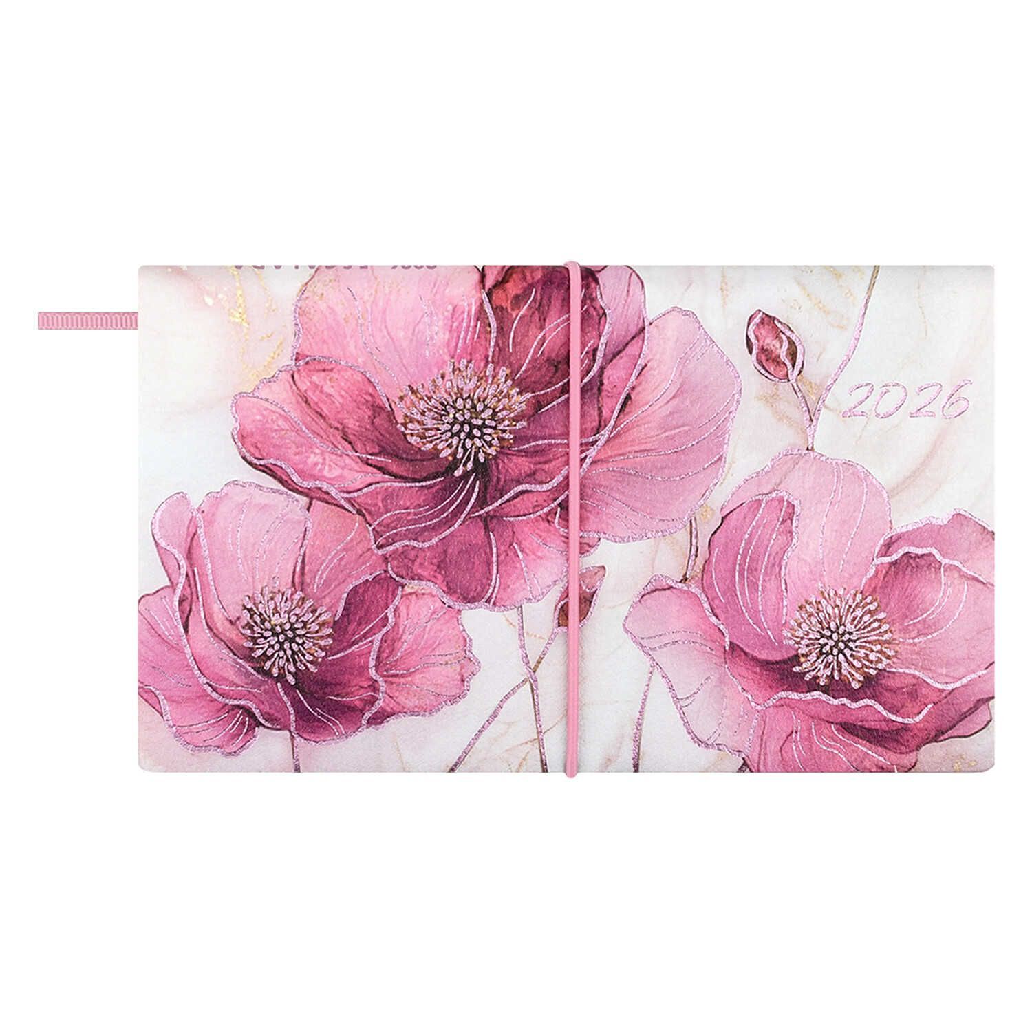 Планинг дат. 2026г 175*105мм 64л., кожзам., мягк.пер. "Розовые маки" тисн.фольгой, резинка, ляссе