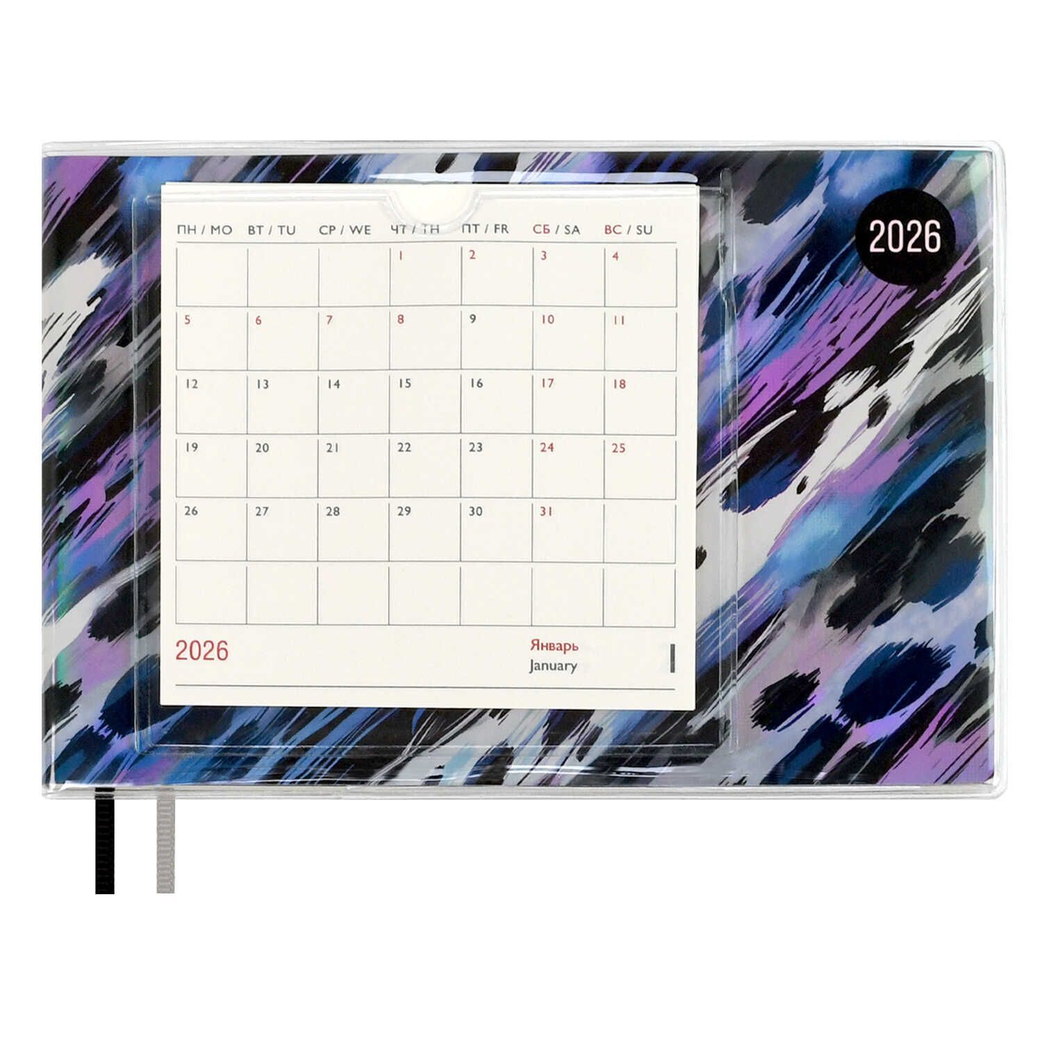 Планинг дат. 2026г 180*127мм 64л., ПВХ, мягк.пер. "Леопард голубой" ляссе