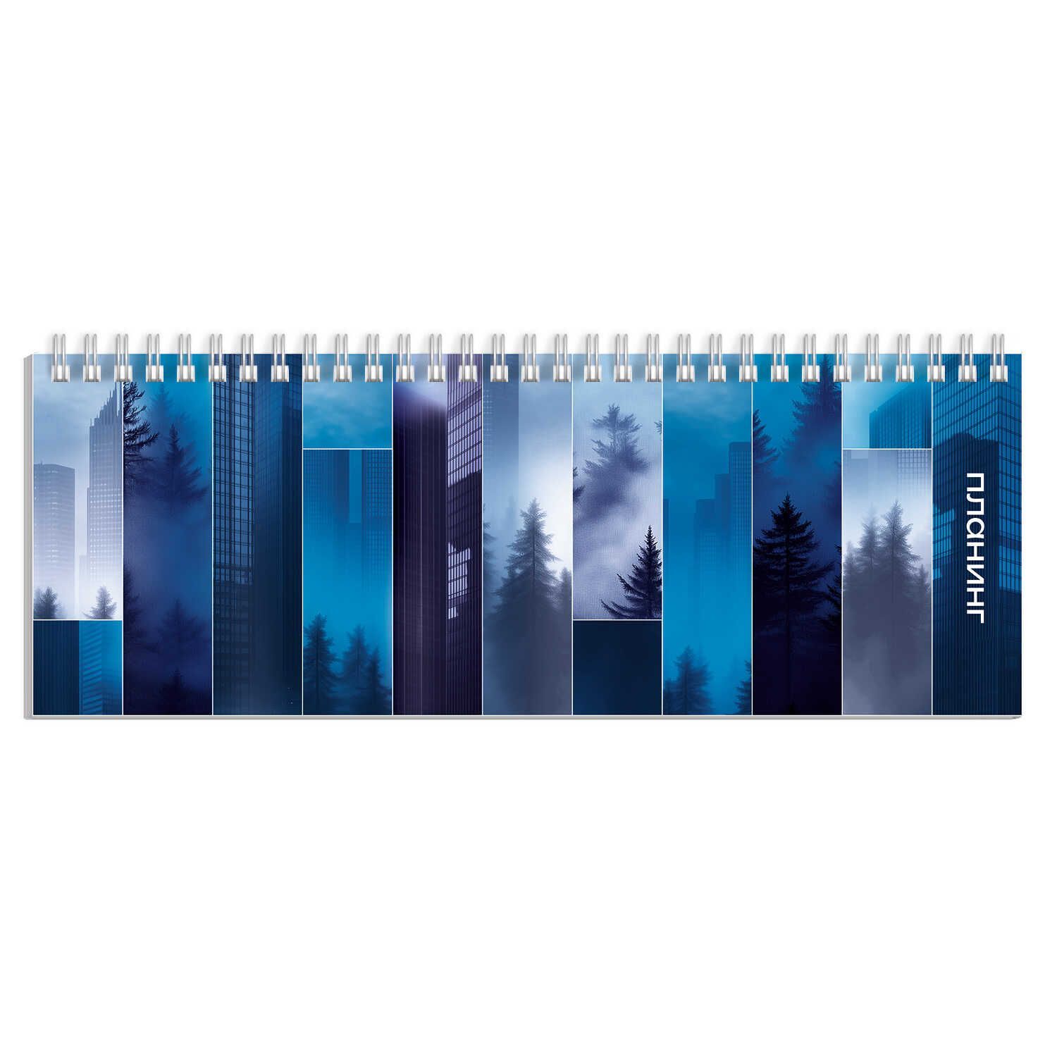 Планинг недат. 290*100мм 64л., картон, гребень "Коллаж в синих тонах" глянц.лам.