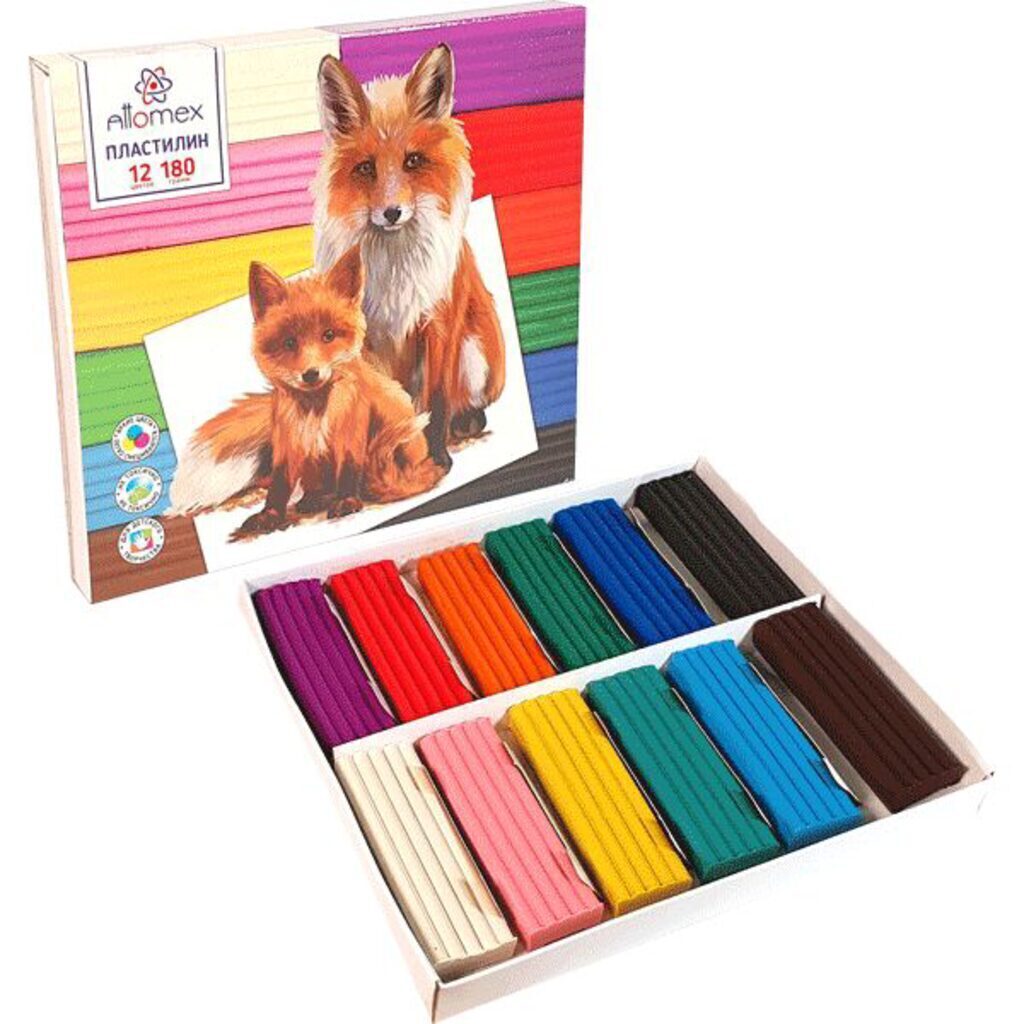 Пластилин 12цв 180гр. Attomex, карт.упак.