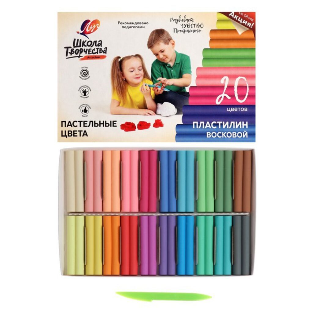 Пластилин 20цв 240гр. Школа творчества, восковой, мягкий со стеком. ПАСТЕЛЬ