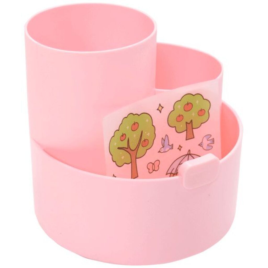 Органайзер для канцелярских принадлежностей "deVENTE. Orbit" настольный, вращающийся, с подставкой под телефон, 12x12,5x12 см, пластиковый, цвет розовый, со стикерами kawaii