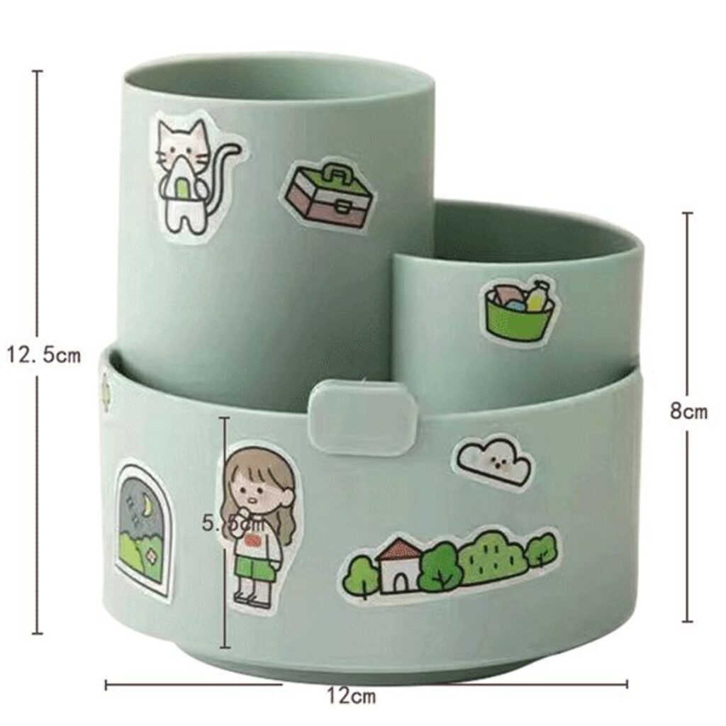 Органайзер для канцелярских принадлежностей "deVENTE. Orbit" настольный, вращающийся, с подставкой под телефон, 12x12,5x12 см, пластиковый, цвет зеленый, со стикерами kawaii