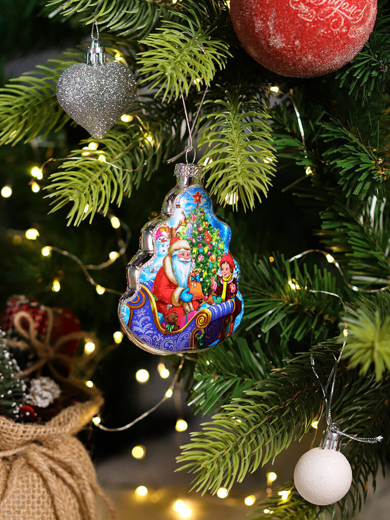 Подвесное украшение 11см Елочка "Добрый Дед Мороз", стекло