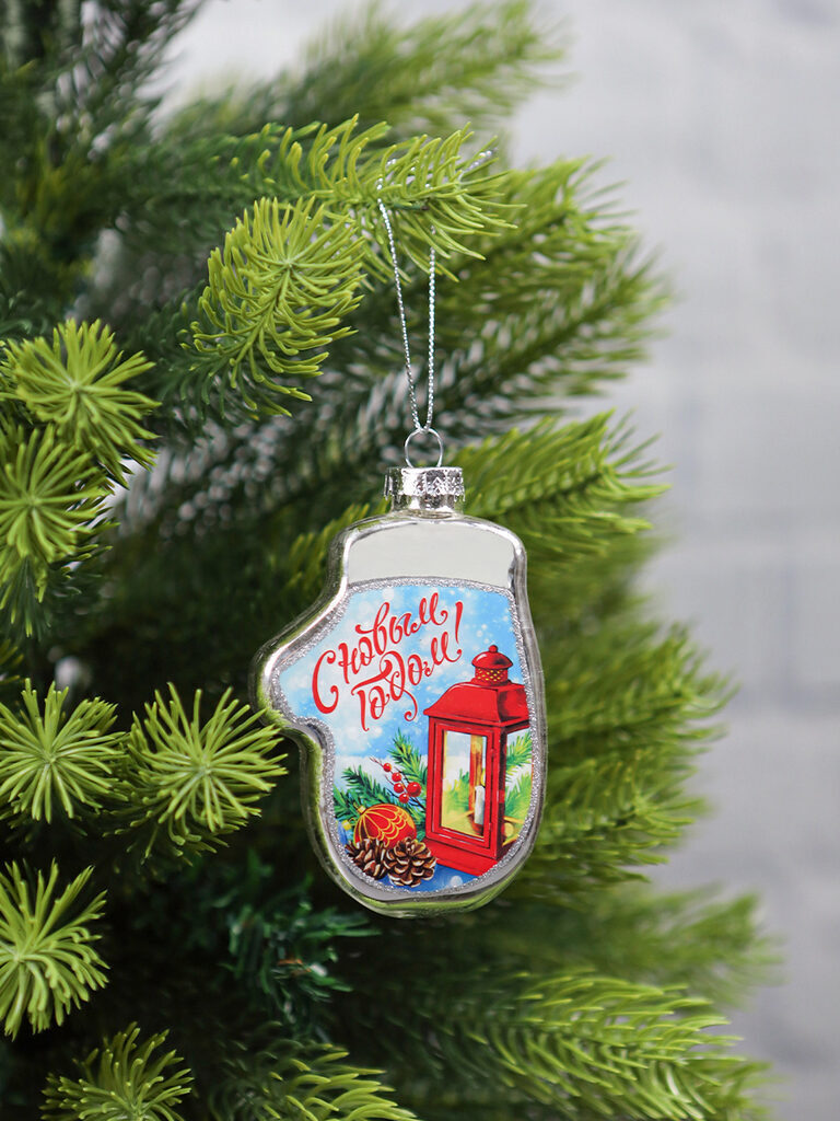 Подвесное украшение 11см Варежка "Зимняя ночь" стекло