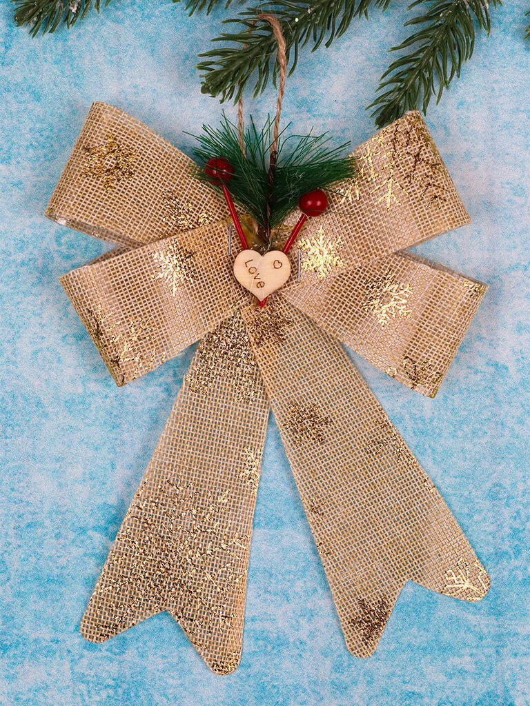 Подвесное украшение 20см "Ёлочный бант Новогодний" бежевый