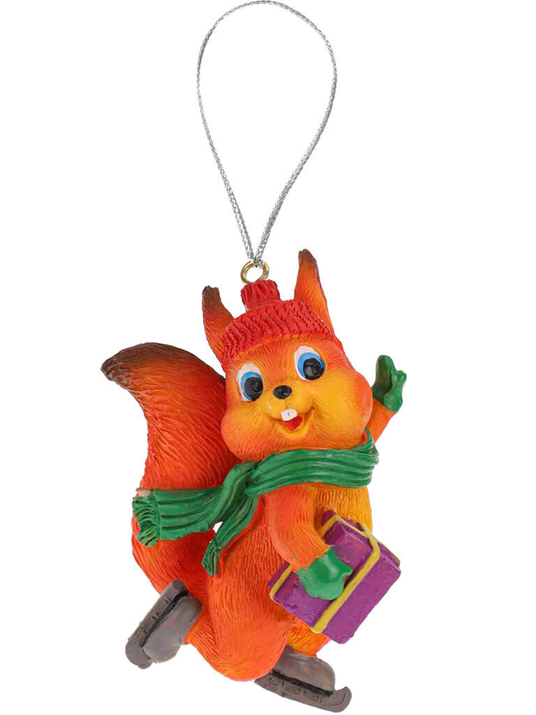 Подвесное украшение 7см "Бельчонок на коньках" из полирезины