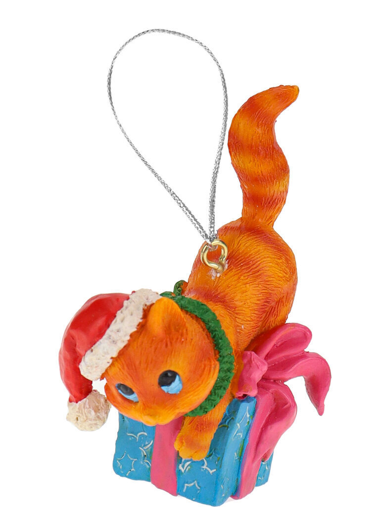 Подвесное украшение 7см "Котик с подарком" из полирезины