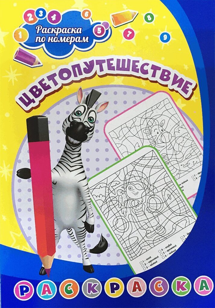 Книжка-раскраска по номерам поможет ребенку в правильной постановке и тренировке руки, развитии памяти, внимания и образного мышления. Пользуясь подсказкой, - картой соответствия номеров и цветов, - ребёнок ещё изучает и запоминает цвета и цифры. Раскрашивая картинки, дошколёнок научится передавать цветовую гамму с помощью карандашей, фломастеров или красок, освоит умения раскрашивать, выражать свои эмоции в рисунках. Книжка-раскраска по номерам увлекательна ещё тем, что черно-белые рисунки на каждой страничке состоят из большого количества разных частей и элементов, что надолго привлечёт внимание малыша и будет ему интересно. Чтобы понять, что скрыто в раскраске, юному художнику нужно раскрасить детали рисунка. Забавные персонажи, простые контуры, возможность творческой реализации - это очень познавательно, весело и поучительно! Раскраски по номерам алгоритмичны, что поможет выработать у ребёнка навык действовать по правилу, необходимый для обучения в школе. А к готовому рисунку дети могут составлять свои ис