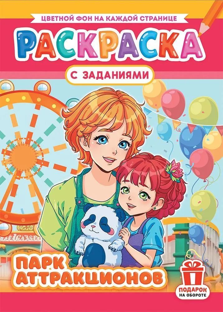 Раскраска с наклейками "Аниме. Парк аттракционов" А4 16стр.