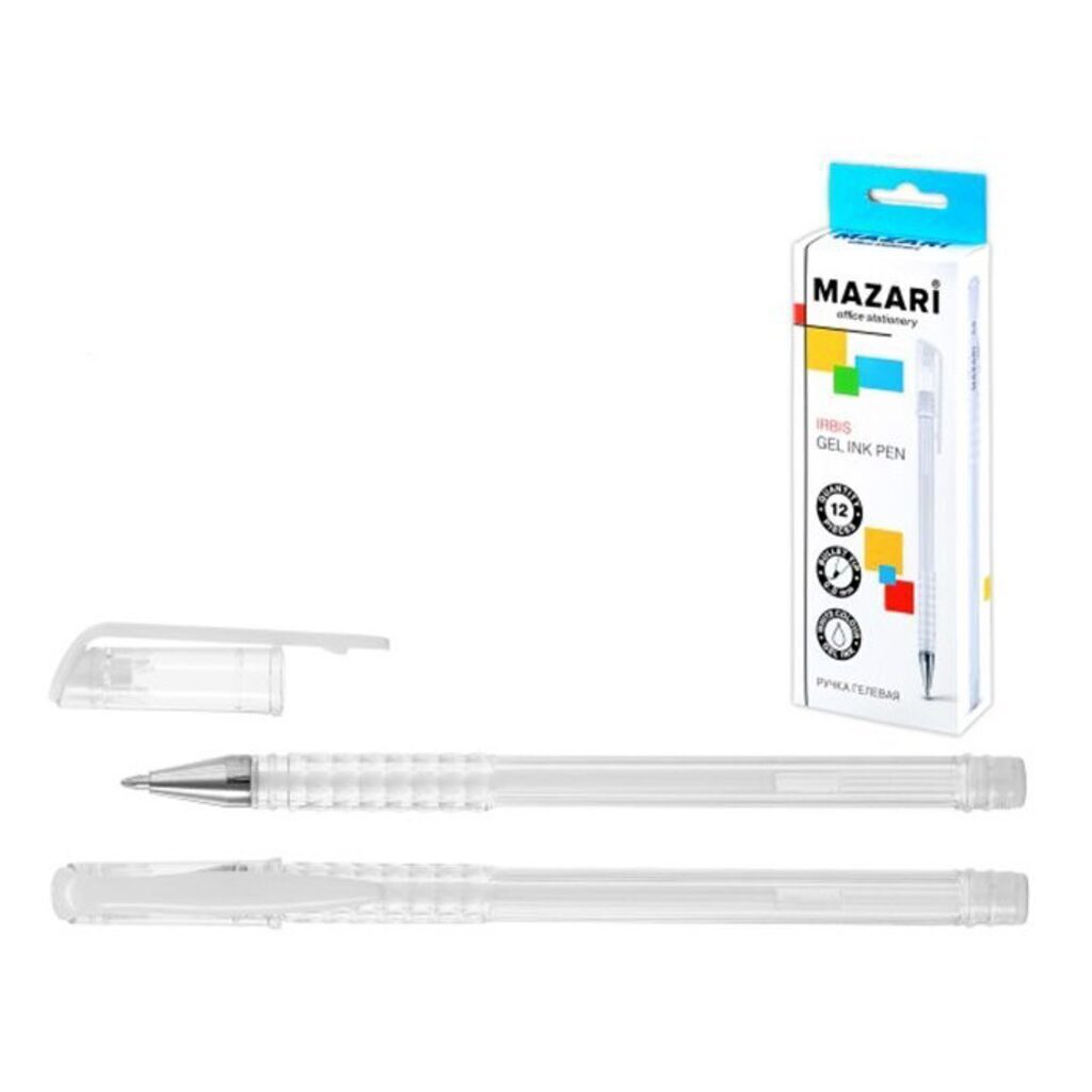 Ручка гелевая IRBIS, БЕЛАЯ, швейцарский пишущий узел и чернила производства США, пулевидный пишущий узел 0.8 мм, пластиковый корпус, сменный стержень 130 мм