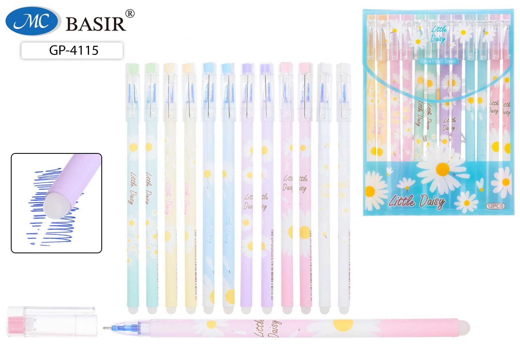 Ручка гелевая стираемая Basir "Ромашка" синяя, 0,5мм