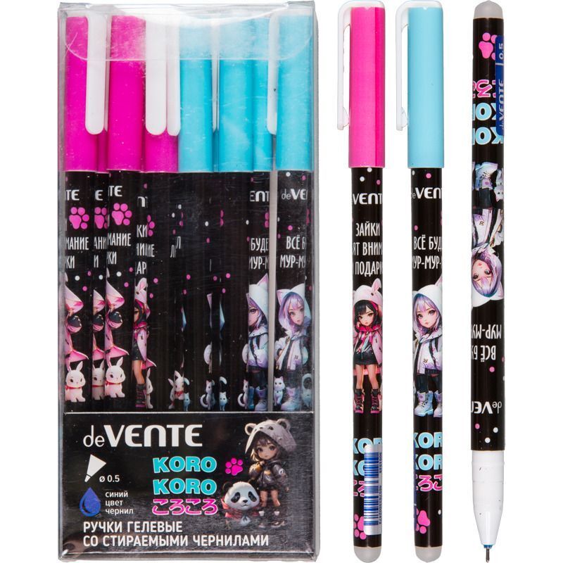 Ручка гелевая стираемая "deVENTE. Korokoro" d=0,5 мм, 2 дизайна корпуса ассорти, с ластиком, сменный стержень, индивидуальная маркировка, синяя