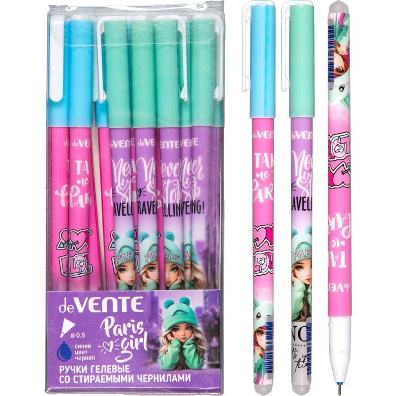 Ручка гелевая стираемая "deVENTE. Paris Girl" d=0,5 мм, 2 дизайна корпуса ассорти, с ластиком, сменный стержень, индивидуальная маркировка, синяя