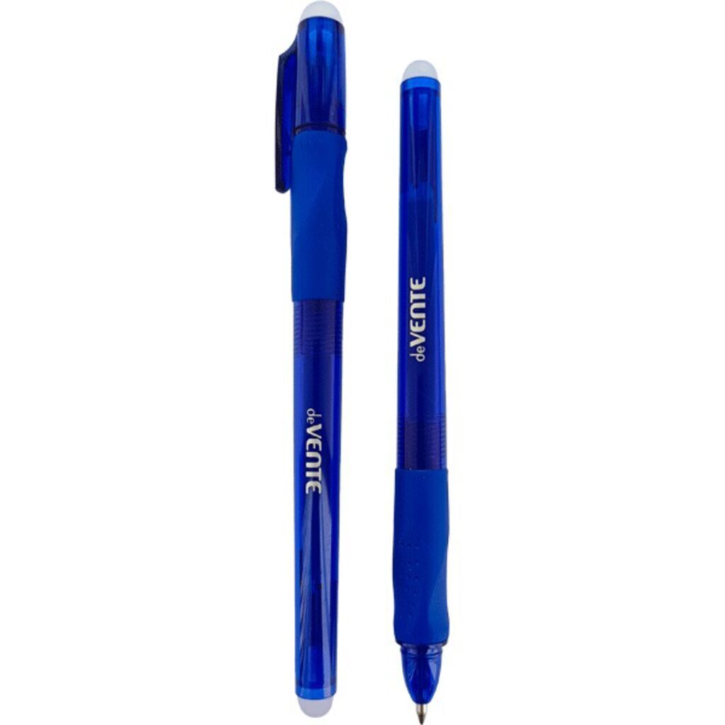Ручка гелевая стираемая "deVENTE. School" d=0,7 мм, полупрозрачный синий корпус, с эргономичным каучуковым держателем, с 2-мя ластиками (в колпачке и на конце корпуса), сменный стержень, индивидуальная маркировка, синяя