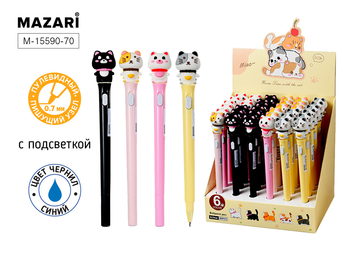 Ручка шариковая MIAO, СИНЯЯ, с подсветкой, пулевидный пиш.узел 0.7мм, корпус пластиковый, сменный стержень 98мм, картонный дисплей