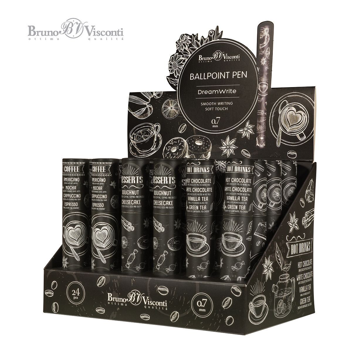 Ручка шар. BV "DreamWrite. Caffe nero" синяя, 0,7мм, 3 вида**