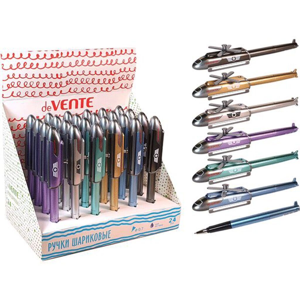 Ручка шариковая подарочная "deVENTE. Вертолёт" с колпачком в форме вертолёта, d=0,7 мм, цвета корпуса ассорти, сменный стержень, индивидуальная маркировка, в картонном дисплее, синяя