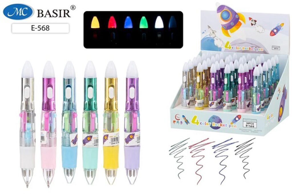 Авторучка - МИНИ: 4-х цветная: детская; "Ракета"; мини-корпус с цветным резиновым держателем, прорезиненный наконечник в виде "Единорога"; 0,5 mm.